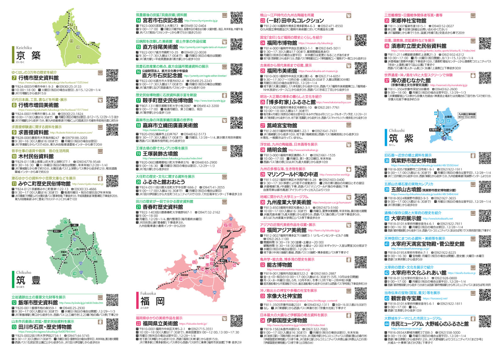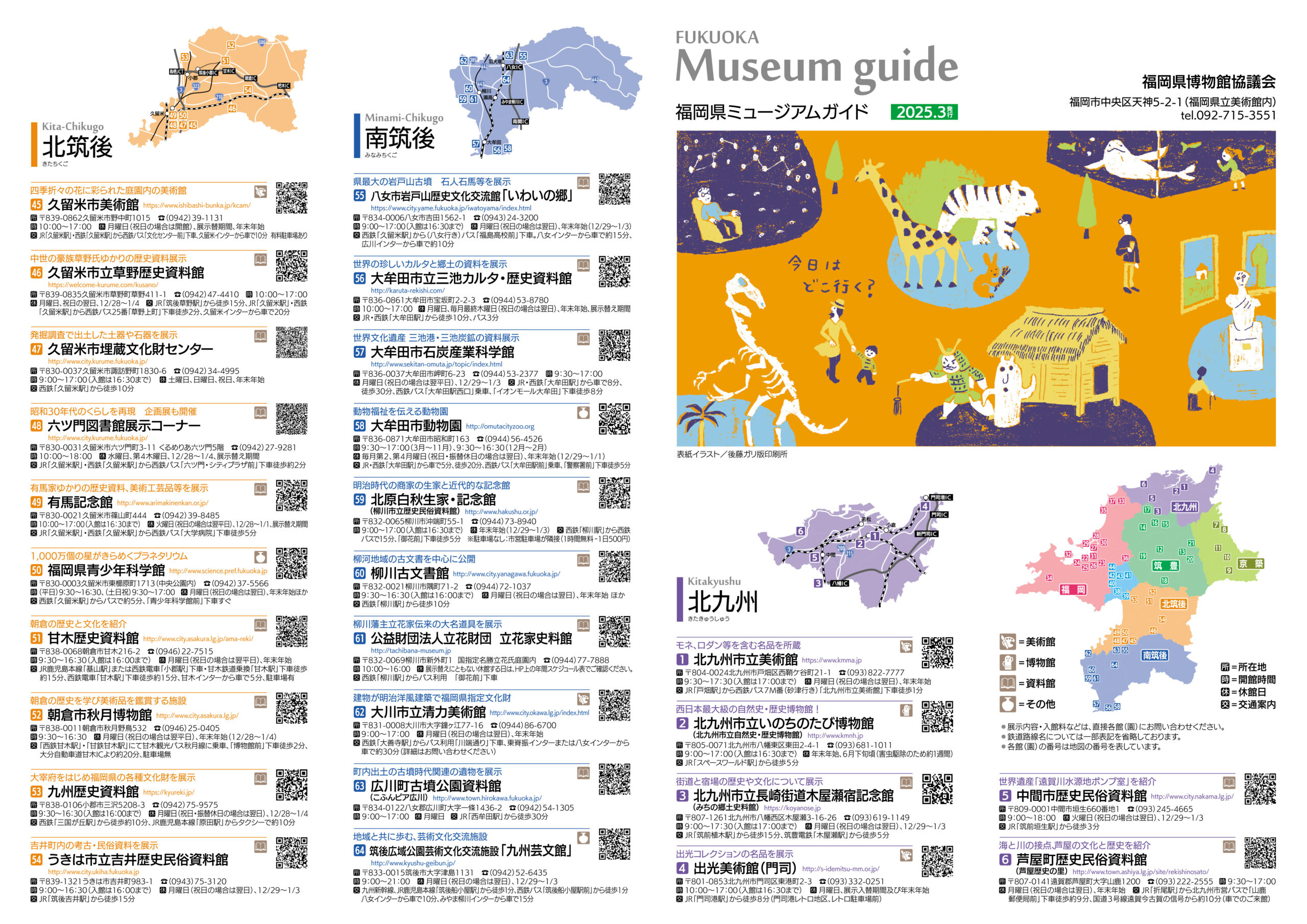 福岡県博物館協議会の加盟館園を掲載した福岡県ミュージアムガイドをダウンロードしてご覧いただけます。各館園の詳細については、直接各館園にお問い合わせください。